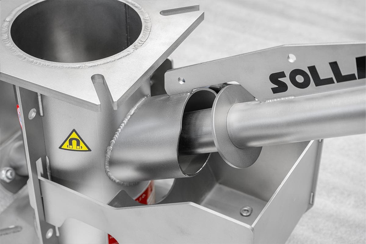 Усиленный корпус рассчитан на то, чтобы выдерживать столб гранулята и весь бункер (около 200 кг). Поэтому сепаратор можно устанавливать непосредственно под бункером термопластавтомата без необходимости в дополнительных опорах.