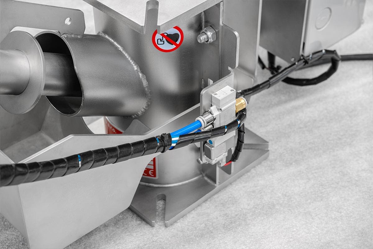 Сепаратор MSS-AC WORM улавливает ферромагнитные металлические примеси (стружку, заусенцы, фрагменты инструмента) из пластикового гранулята перед подачей в термопластавтомат. Он защищает шнек термопластавтомата, инжекционные сопла и форму от повреждений и предотвращает брак, вызванный металлическими загрязнениями.