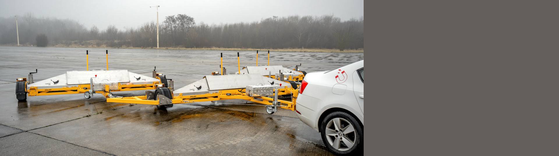 Магнитная подметальная машина FALCON больше подходит для небольших региональных аэродромов. Выпускается в вариантах рабочей ширины 2, 3 и 6 метров. Магнитный подборщик FALCON является отличным решением для сбора FOD на аэродромах с травяным покрытием взлетно-посадочных полос, поскольку его конструкция позволяет эффективно собирать FOD даже на неровных поверхностях.
