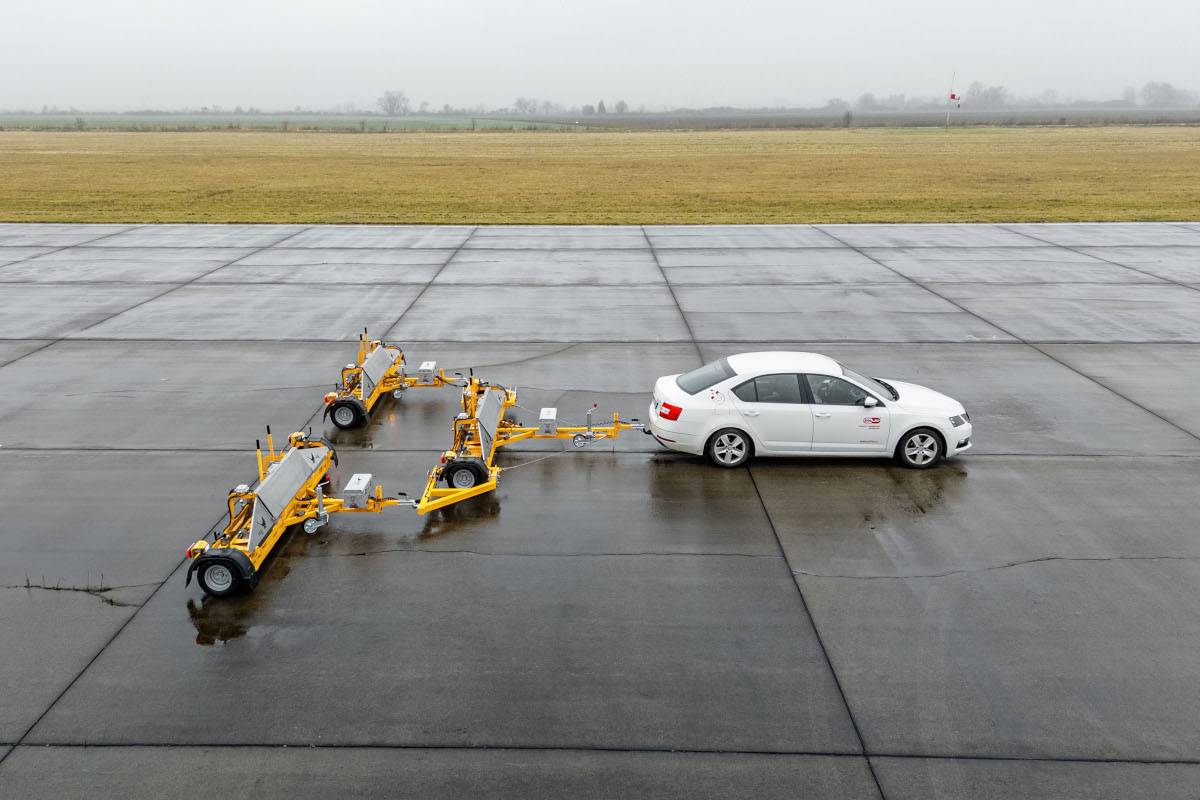 Мобильный светосигнальный крест установлен на прицепе. Таким образом, мобильное устройство можно быстро доставить в нужное место. Конструкция светосигнального креста позволяет одному человеку собрать или разобрать его за 5 минут.Крест состоит из 13 светодиодных огней с автоматическим переключением между дневной и ночной интенсивностью света. Длина плеча светосигнального креста составляет 4,26 метра. Дизельный электрогенератор обеспечивает питание в течение 120 часов работы при полной нагрузке огней без дозаправки.