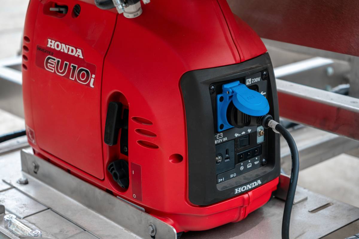 - Инверторный бензиновый электрогенератор (1 кВт) с баком на 120 литров бензина, резервным аккумулятором (150 А·ч) и сигнальным маяком. При полном баке обеспечивает автономную работу светосигнального креста в течение 1 недели с максимальной суточной мощностью света.